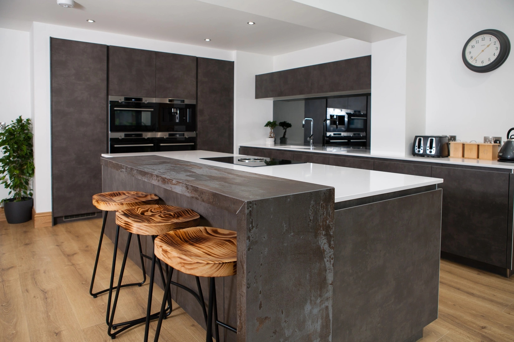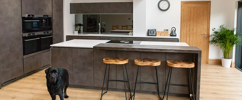 Silestone is a popular choice for kitchen worktops, as not only are the colours available beautiful, but they perform exceedingly well in the home. Dekton is also a fabulous choice for high traffic areas, as it has so many application possibilities. Both surfaces have an array of advantages, all made possible thanks to them being enhanced stone, as opposed to an all natural product such as granite or marble. They combine beauty with performance ability, which is why they are both such popular choices for many projects. We love the combination of the two, contrasting stone choices, as well as the overall kitchen design.